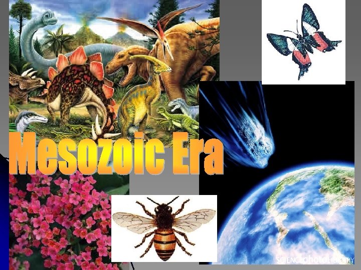 l Mesozoic Era: dominated by dinosaurs and other reptiles, referred to as Age of Reptiles l l First birds appeared; flowering plants appeared By end of era, dinosaurs and many other plants and animal species became extinct
