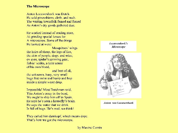 At about the same time that Robert Hooke was making discoveries with a microscope in England, a Dutch amateur scientist named Antony van Leeuwenhoek was making incredible discoveries with a tiny single-lens microscope of his own design. He made the first observations of single-celled organisms such as protists and bacteria. He called his discoveries animalicules. Antony van Leeuwenhoek’s simple microscope