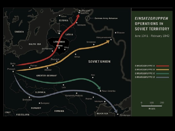 Behind the German Army came Einsatzgruppen, soldiers whose job was to execute civilians and Jews in Nazi-occupied territory.