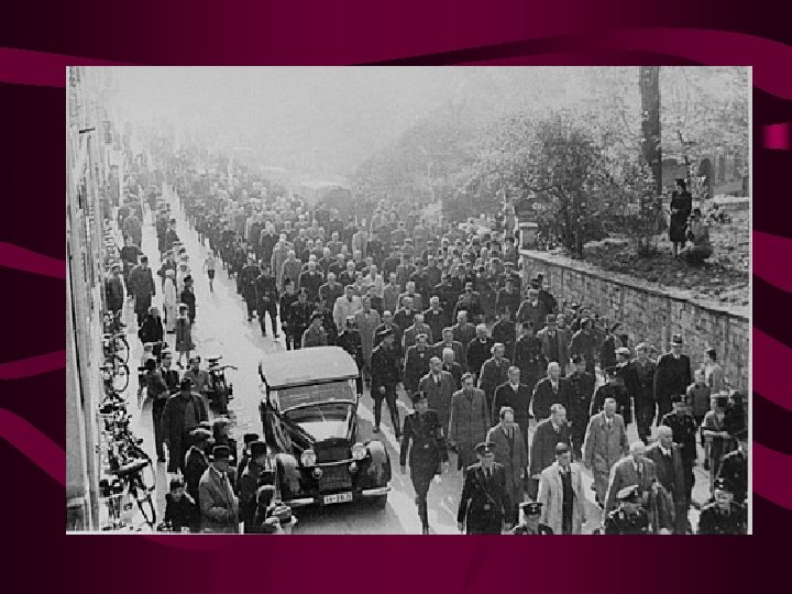Nuremberg Laws • 1935 • Jews banned from serving in armed forces • Anti-Jewish racial laws enacted • Jews no longer considered German citizens • Jews could not marry Aryans • Jews could not fly the German flag
