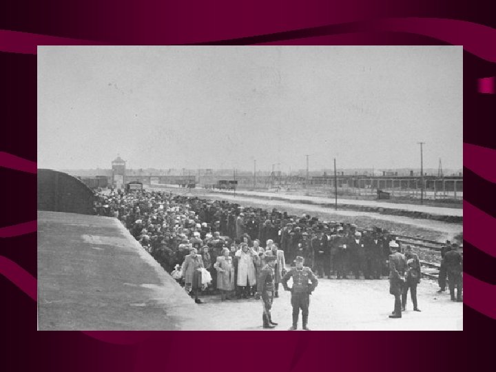 • For days, prisoners travel with no water, food, or bathroom facilities • The old and babies perish • When they arrive at the camp, they are divided into two lines- men and women • They are forced to march a long distance to the barracks • Those who chose to ride in trucks are never seen again • This is the last time many people see their family members