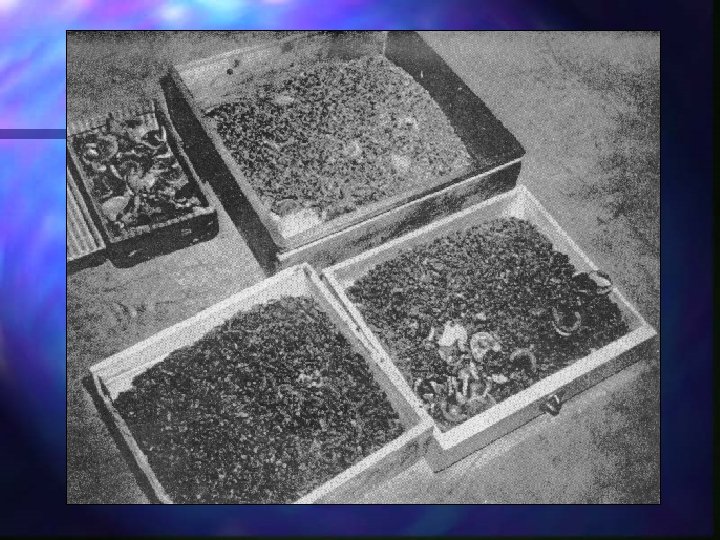 Bales of the hair of female prisoners found in the warehouses of Auschwitz at the liberation. (After January 1945)
