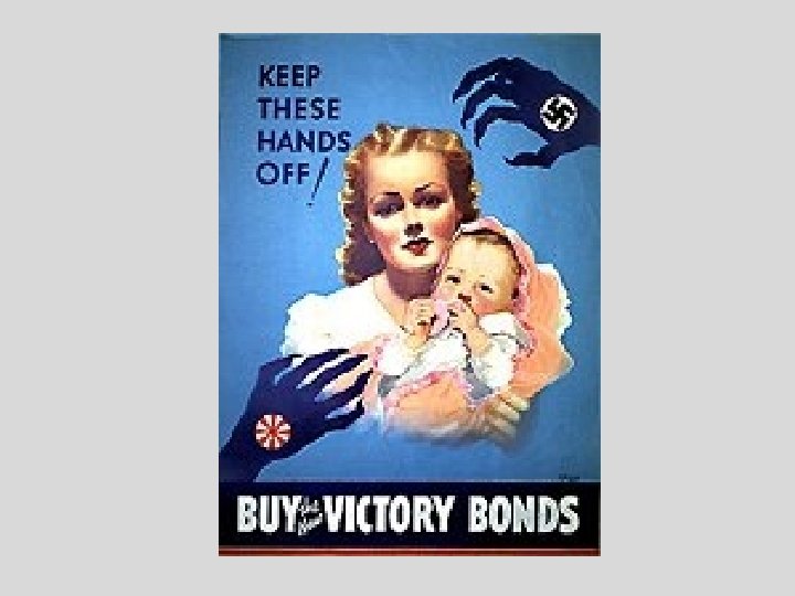 Propaganda • Materials designed to convince the public of their opinions/beliefs • The Canadian government produced sources of propaganda (posters, films, radio advertisements) • Designed to convince Canadians to contribute to the war effort, to express the threat of the enemy, and to increase pride among Canadians