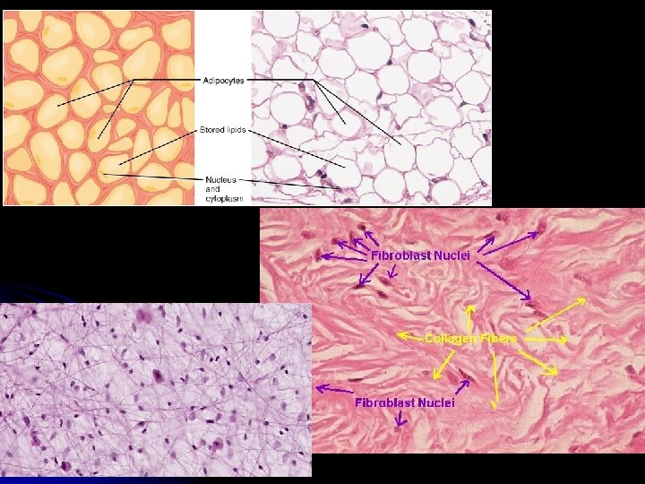Types of Tissue 2. Connective Tissue – Is the most abundant ______ tissue in the body. Used as connectors and for _______, support, transport ____________. Contains a network of nonand storage matrix living material called a _____. l Examples include blood, bone.