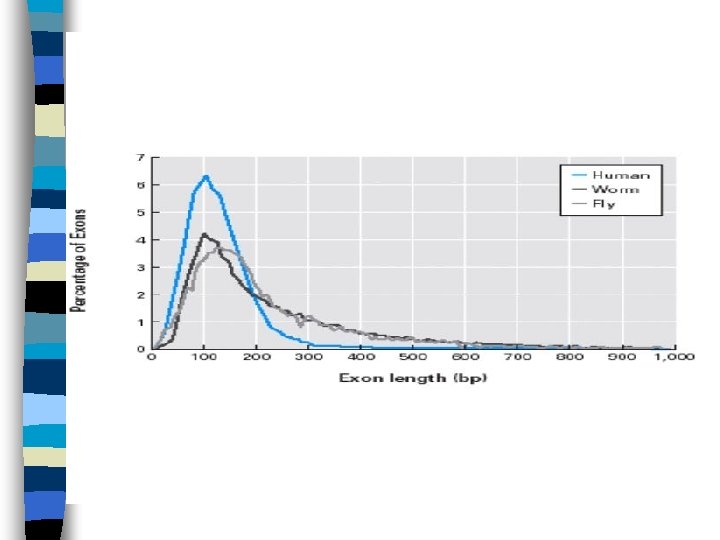 The “Typical” Human Gene Size of exons # of exons Size of introns Size of 3’ UTR Size of 5’ UTR Coding sequence size CDS Genomic extent 145 bp 8. 8 3, 365 bp 770 bp 300 bp 1, 340 bp 447 aa 27 kb