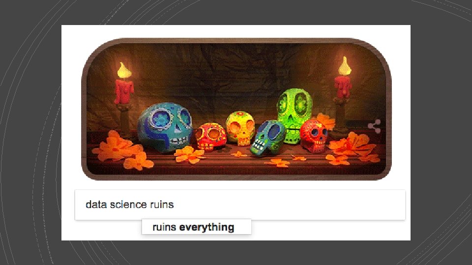 “Data science is a "concept to unify statistics, data analysis, machine learning and their related methods" in order to "understand analyze actual phenomena" with data. ” What do we say it is? “Data scientists examine which questions need answering and where to find the related data. They have business acumen and analytical skills as well as the ability to mine, clean, and present data. ” “[D]ata science spans a broader array of activities that involve applying principles for data collection, storage, integration, analysis, inference, communication, and ethics. ” https: //en. wikipedia. org/wiki/Data_science https: //datascience. berkeley. edu/about/what-is-data-science/ https: //www. nap. edu/catalog/25104/data-science-for-undergraduates-opportunities-and-options