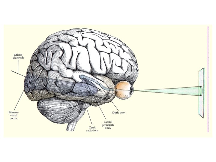 Image Capture • • • Huge dynamic range 10 -8 – 10+6 μW/cm 2 Photons: poisson process. Noisy at low levels For low light: large receptors, slow integration Rods/cones, local adaptation, change of amplitude and time constant, motion deblur