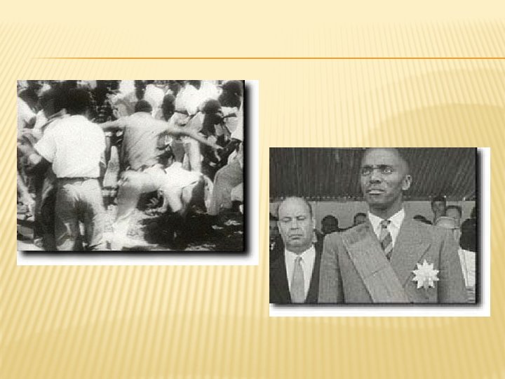 INDEPENDENCE AND HUTU RULE � In 1959, violence between the Tutsi and Hutu erupted. � Hutus overthrew Tutsi rule, declared an independent republic and elected the first Hutu president, Greg wa Kayabanda. � Mass killings of Tutsis occurred during the transition to Hutu rule, hinting at things to come.