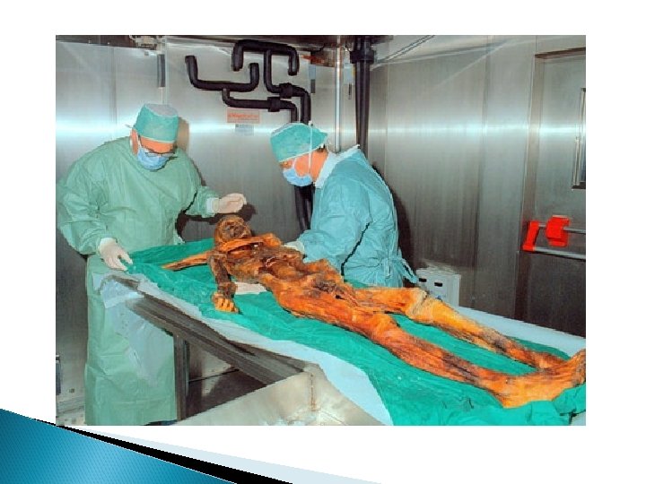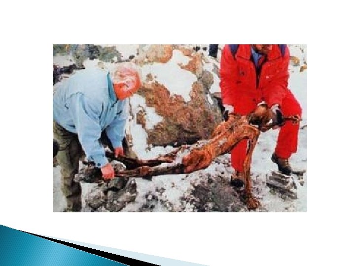 Discovering the Iceman Lying on its front and frozen in ice below the torso, it was crudely removed from the glacier by the Austrian authorities using a small jackhammer (which punctured the hip of the body) and ice-axes using nonarchaeological methods. The body was then taken to a morgue in Innsbruck, where its true age was subsequently ascertained.