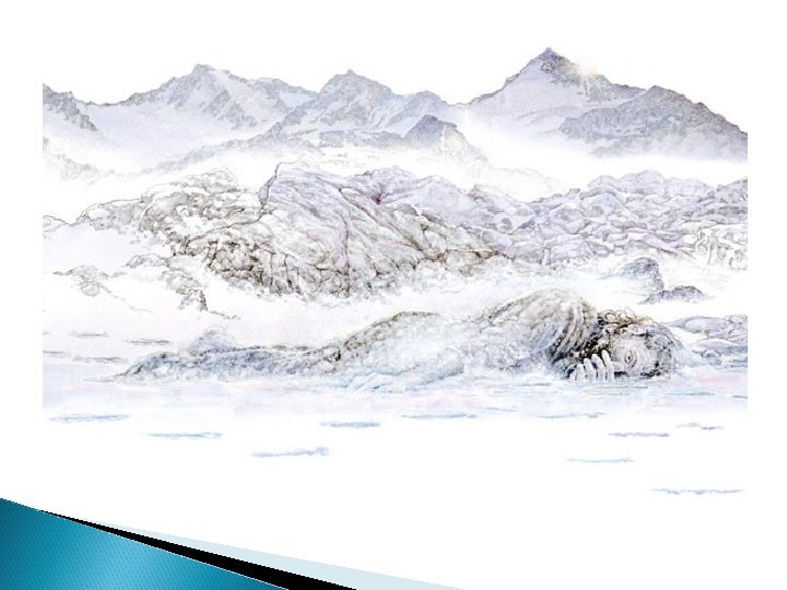 Ötzi the Iceman while still frozen in the glacier, photographed by Helmut Simon upon the discovery of the body in September 1991