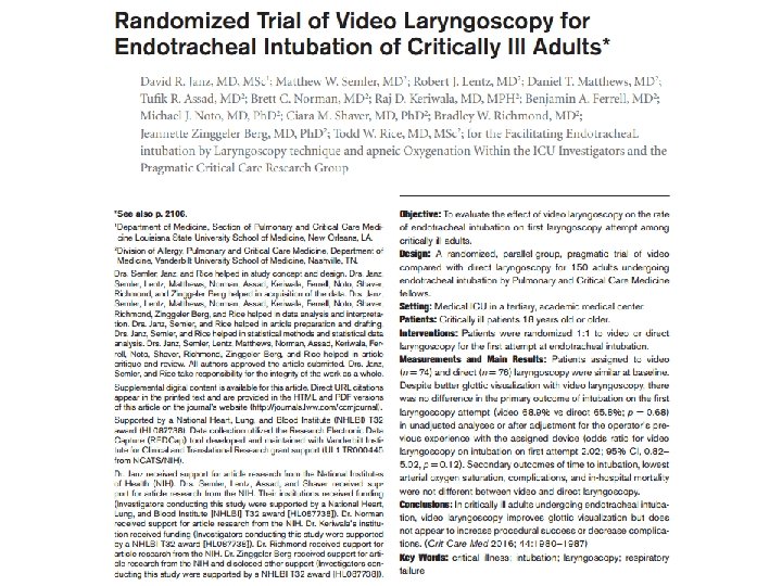 Video vs. Direct Laryngoscopy in Critically Ill Patients Patient Level Randomization LHS