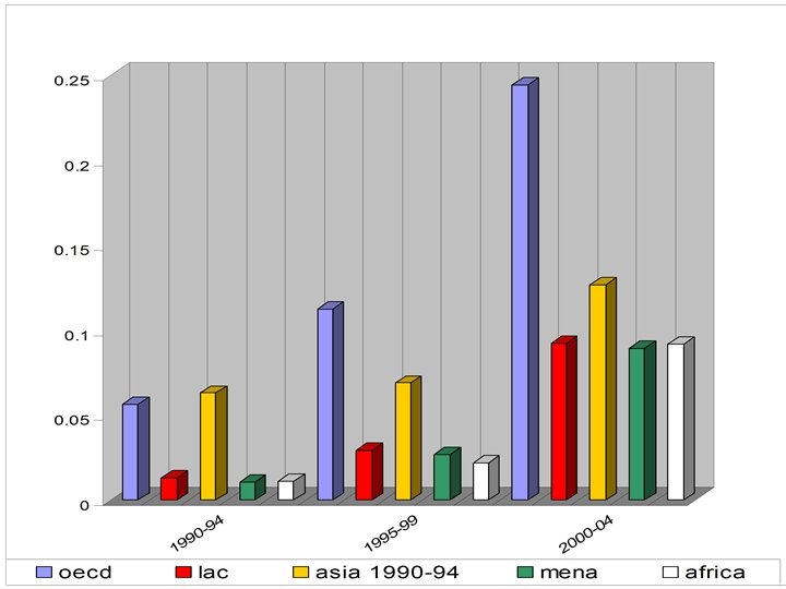 Summary of regression results Endogenous growth model: OECD LAC Asia AFRICA MENA weak for mobile only fixed (>LAC) only mobile