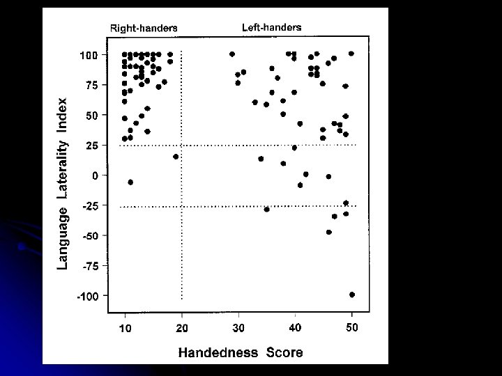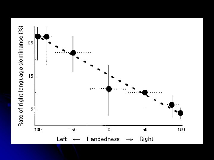 Knecht’s work in Münster Knecht et al. (2000): language dominance defined with functional transcranial Doppler ultrasonography (f. TCD) l 188 righthanders l Word generation task (verbal fluency) l