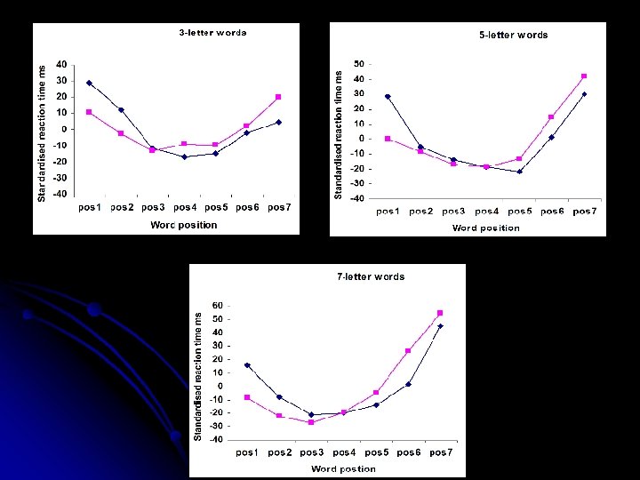 OVP task with f. MRI subgroup 4 letter words fixated on each position l 7 letter words fixated on each odd position (1, 3, 5, 7) l All words seen at all positions by each participant l