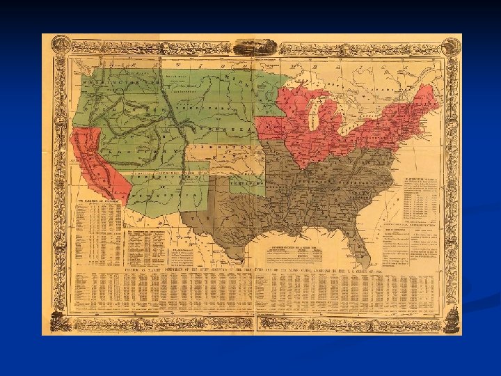 Election Results / Significance n Buchanan won n Voting along sectional lines: n Dem’s won 14 slave, 5 free states n Rep’s won 11 free states (not on ballot in slave states) & 1/3 of popular votes