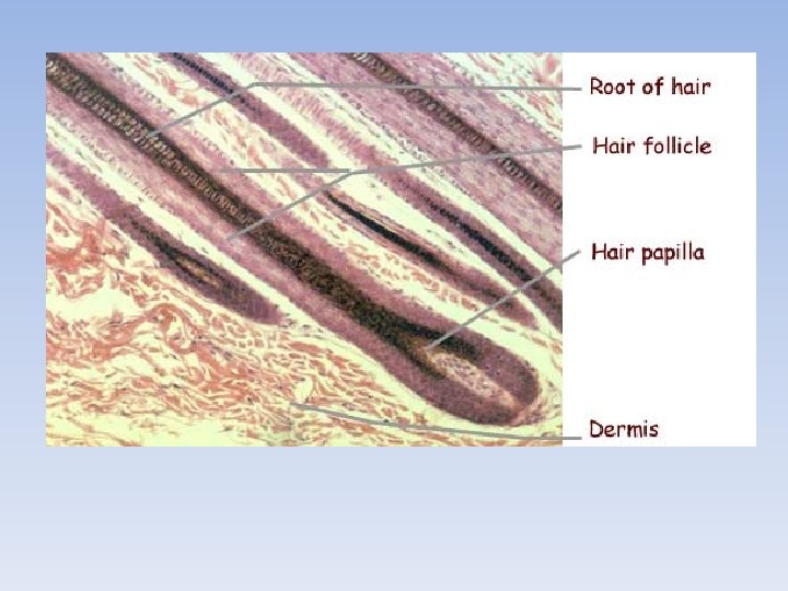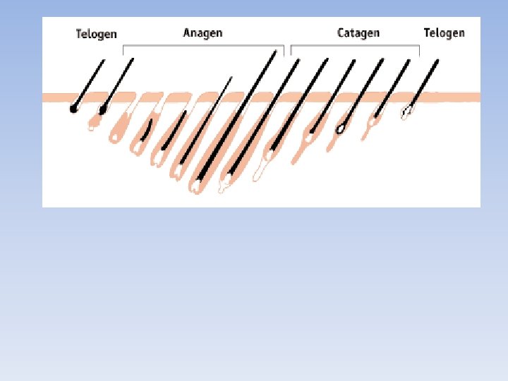 Hair Growth 1. Coarse hairs grow at a slower rate and falls out less frequently than finer hair 2. Grows ~ 1 cm/month (0. 33 mm /day) 3. Hair is replaced every 3 -6 years with a new hair