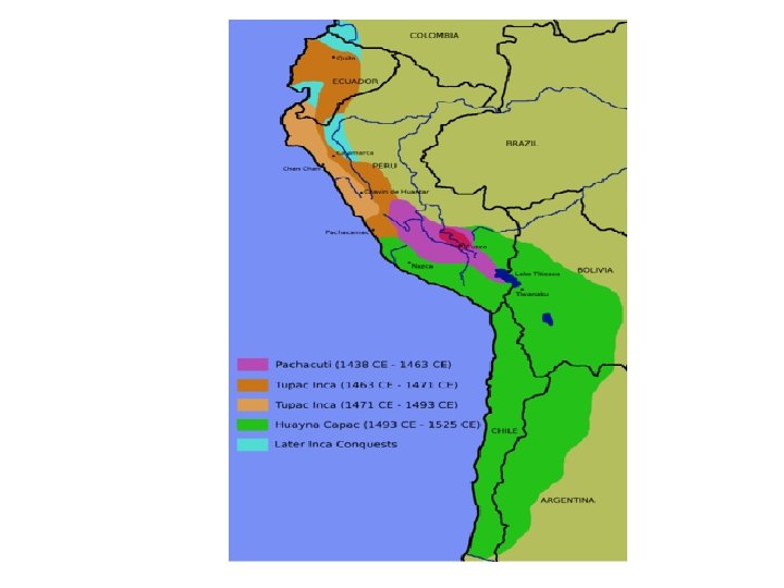 • The Inca people began as a tribe in the Cuzco area around the 12 th century. Under the leadership of Manco Capac, they formed the small city-state of Cuzco. In 1438 they began a far-reaching expansion under the command of Sapa Inca (paramount leader) Pachacuti, whose name literally meant "world-shaker". During his reign, he and his son brought much of the Andes mountains (roughly modern Peru and Ecuador) under Inca control.