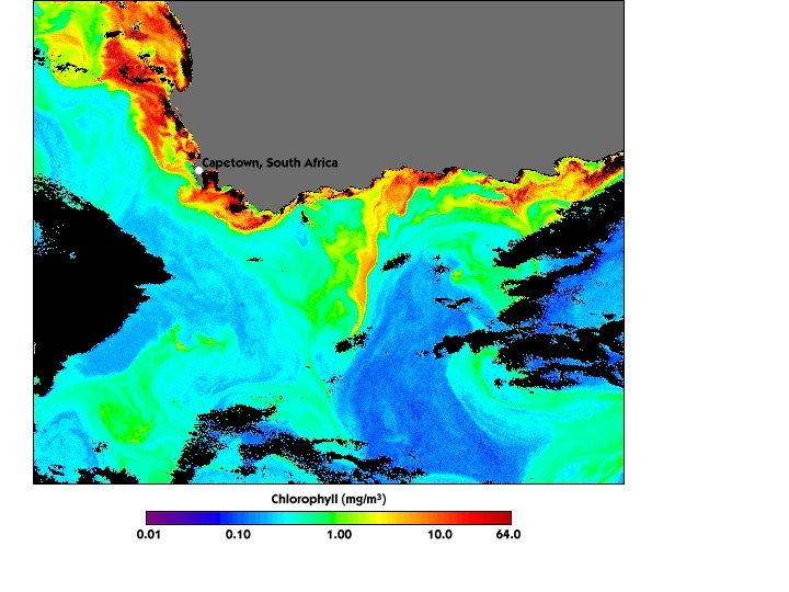 Monsoonal variations in the Indian Ocean give rise to seasonal changes in phytoplankton concentrations. Here, following a period of pre-monsoon calm (May-June, composite, left), strong summer southwesterly monsoon winds generate upwelling of nutrient-rich waters, leading to the development of bloom conditions (September-October composite, right).