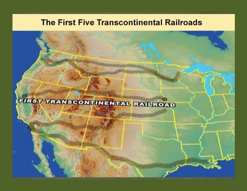 6. Transportation: Linked raw materials to factories & factory goods to consumer markets a. River & canals b. Roads c. Railroads (By 1900 5 Transcontinental Systems in U. S. )