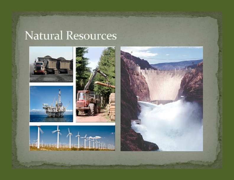 1. Natural Resources: Become goods a. Raw Materials – coal, iron ore, timber b. Fertile soil ‐> ‐‐ surplus agriculture ‐‐> ‐‐‐‐‐‐Industrial ‐‐‐‐ Revolution c. Swift moving water = power & transportation