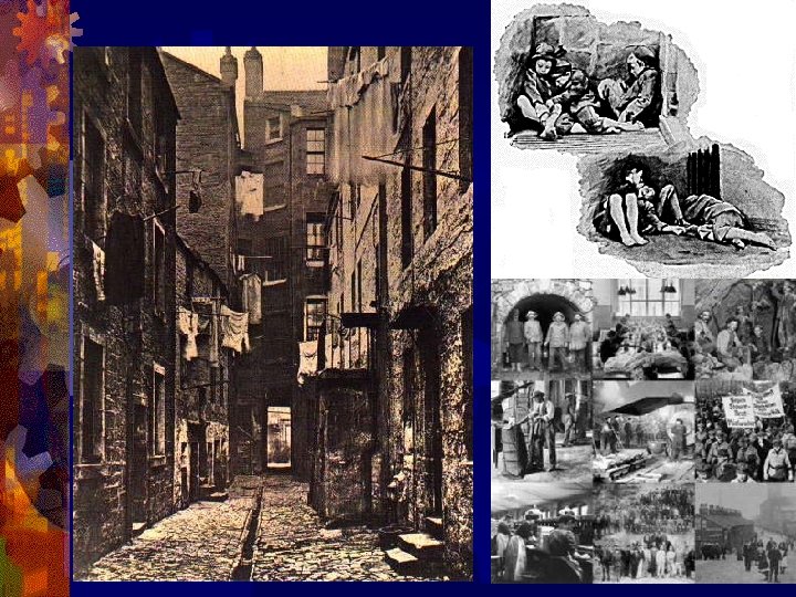 The Working Class ® Living Conditions ® Rapid Urbanization caused: ® Cities without adequate housing, education, and police protection ® Urban slums ® Disease and sickness spread quickly ® Life span is only 17 years ® Lack of sanitary & building codes