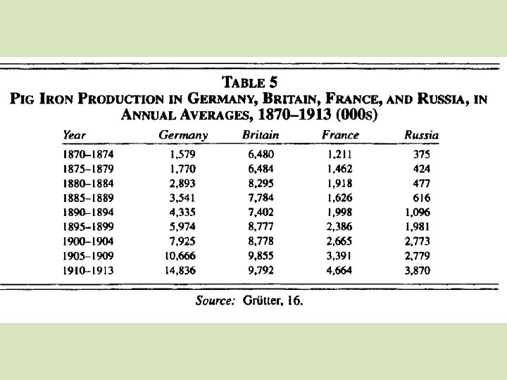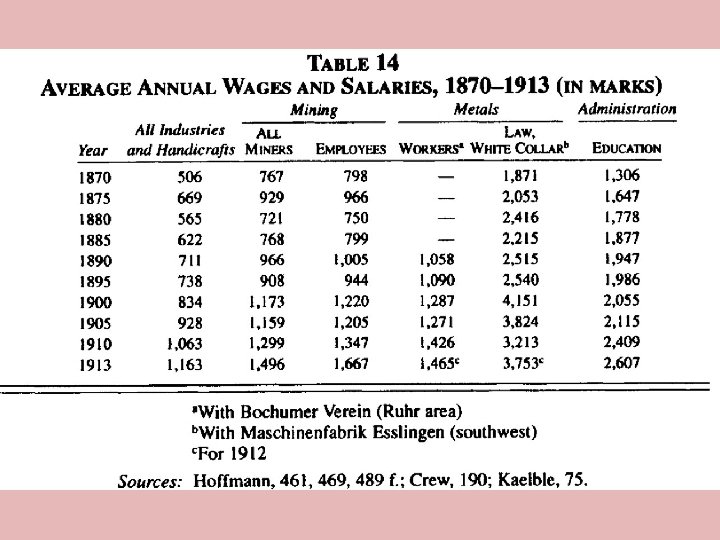 (1913 ~ 100) Metal Coal Transport Building Textile 1870 7, 5 13, 9 8, 9 20, 1 31, 9 1880 13, 9 24, 7 16, 1 29 40, 1 1890 23, 8 36, 9 27, 9 45, 6 65 1900 47, 5 50, 1 67 72, 8 1913 100 100 100 Hans-Ulrich Wehler, Deutsche Gesellschaftsgeschichte, vol. 3 (Munich, 1995)