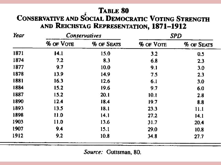 Germany’s First Economic Miracle • German Social Democratic Party (SPD) – Founded 1875 – Kept Marxist socialism alive – Divided b/w reform advocates/revolutionaries • Bismarck’s Repression of the SPD – Thought socialism would undermine stability – Antisocialist laws – Yet SPD ↑ rep. in Reichstag • Repression didn’t work, so… – enacted social welfare legislation – accident insurance/old age/disability pensions