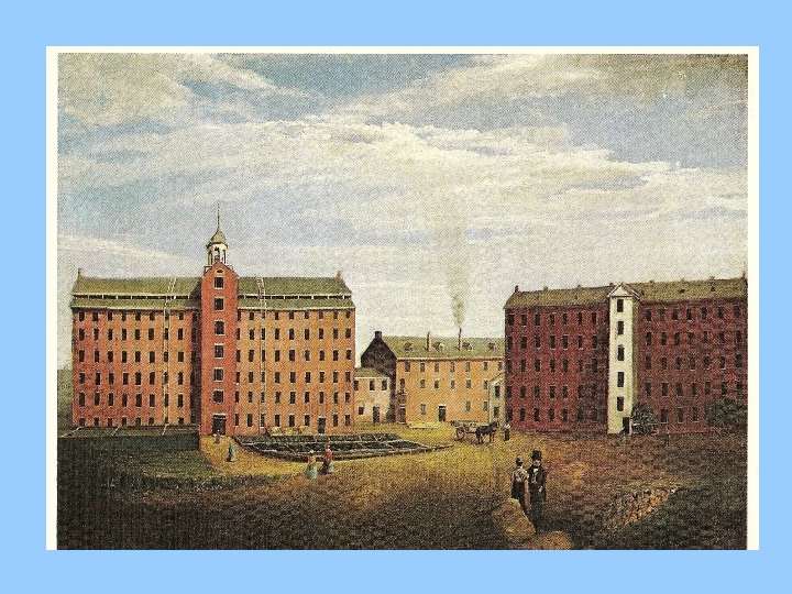 Weaving of Cotton • Now a bottleneck in weaving • Golden age of hand loom weavers. High wages for skills 1770 -1800. • 1787 Cartwright invents the power loom. • Factories (Mills) are located near “fall line” places where rivers drop fast. • Later steam powered frees factory locations. • By 1833 a man and a child assistant in a cotton factory produced 20 times output of handloom weaver