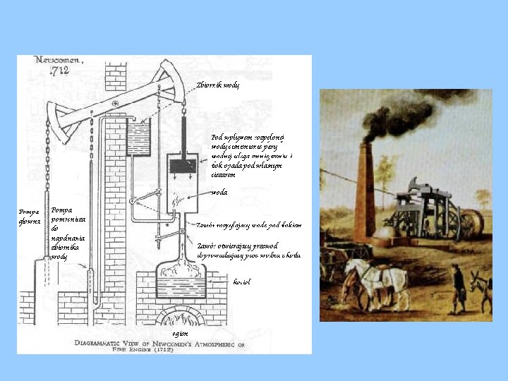 Steam Engine • Until the steam engine---only human, animal, water or wind power. Last two limits the location. • In 1712, Thomas Newcomen invented the an atmospheric engine---known as the Newcomen engine First practical steam engine. • Simple piston and pump. Steam not used to drive piston but only to create a vacuum. Ordinary air pressure provided the force that pushed the piston downwards against the weight of the pump at the other end of the beam. • Largely used to pump water out of mines. But it was expensive to operate and huge fuel consumption. • http: //en. wikipedia. org/wiki/Newcomen_steam_engine