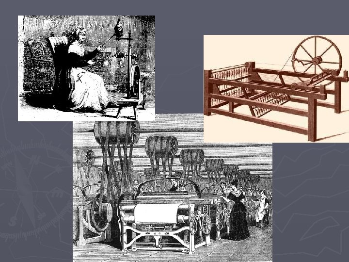 Why Textiles? ► demand for British cloth increasing, especially in colonies ► gadgets being created in homes to make spinning and weaving easier ► some gadgets hooked up to water source ► when steam engines were hooked up, that meant factories could be built anywhere
