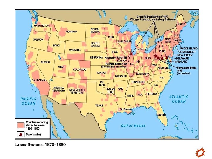 Reaction of Employers hated & feared unions. Why? v. European influences of socialism v. Labor strikes always tended to be violent. Some took steps to stop unions, such as: vforbidding union meetings vfiring union organizers vforcing new employees to sign “yellow dog” contracts, making them promise never to join a union or participate in a strike vrefusing to bargain collectively when strikes did occur vrefusing to recognize unions as their workers’ legitimate representatives