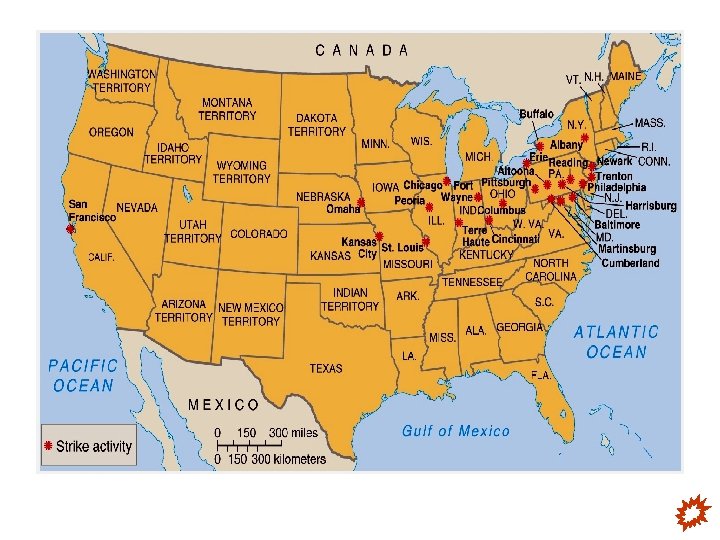 Railroad Workers Organize v. The Great Railroad Strike of 1877 – Railway workers protested unfair wage cuts and unsafe working conditions. – The strike was violent and unorganized. – President Hayes sent federal troops to put down the strikes. −From then on, employers relied on federal and state troops to repress labor unrest.