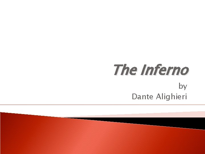 Inferno Facts � It is an allegory of universal human destiny in the form of a pilgrim's journey through hell and purgatory, guided by the Roman poet Virgil, then to Paradise, guided by Beatrice. � By writing it in Italian (the vernacular) rather than Latin, Dante almost single handedly made Italian a literary language, and he stands as one of the towering figures of European literature.