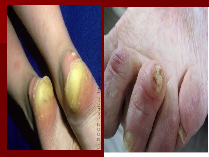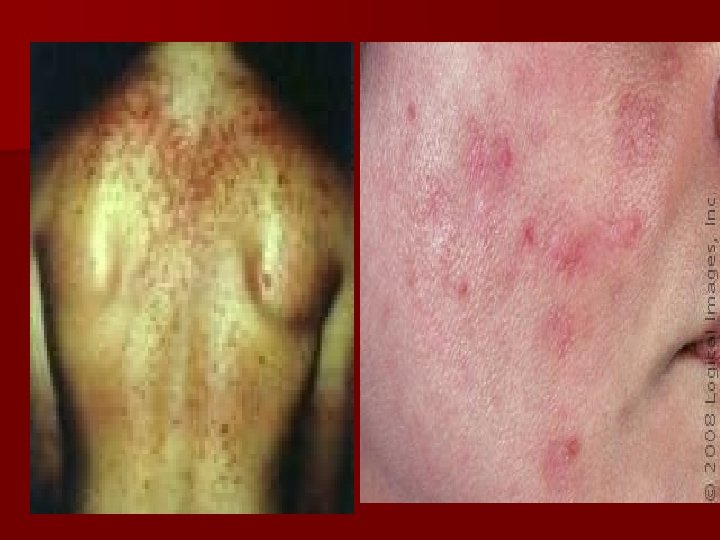 Other color variations n Redness or erythema- inflammation, allergy, fever, embarrassment n Pallor- emotional stress some people become pale. Also could be due to anemia, impaired blood flow to area. n Jaundice- abnormal yellow skin tone due to liver disorder.