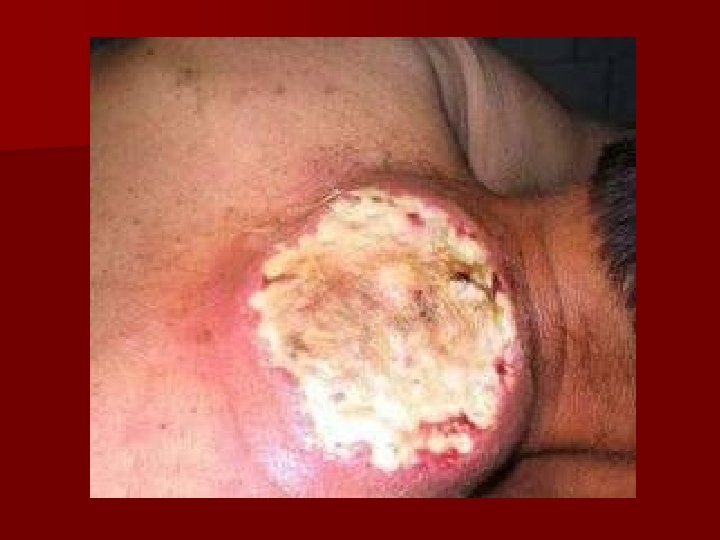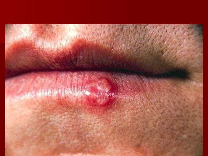 Types of Skin Cancer n Basal cell carcinoma- most common, 30% of all white skin people get it. – – – n Arises from the stratum basale layer of the skin 99% curable if caught early Dome shaped nodules that form an ulcer in the center. Squamous Cell carcinoma– – – Arise from stratum spinosum Grows rapidly and metastasizes if not removed Small red rounded elevation on the skin