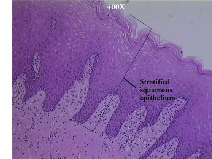 Epidermis: squamous epithelium • No blood vessels, gets nutrients through diffusion • Tough • Keratinocytes • Melanocytes • Tactile receptors • The stratum corneum is the layer that we see.