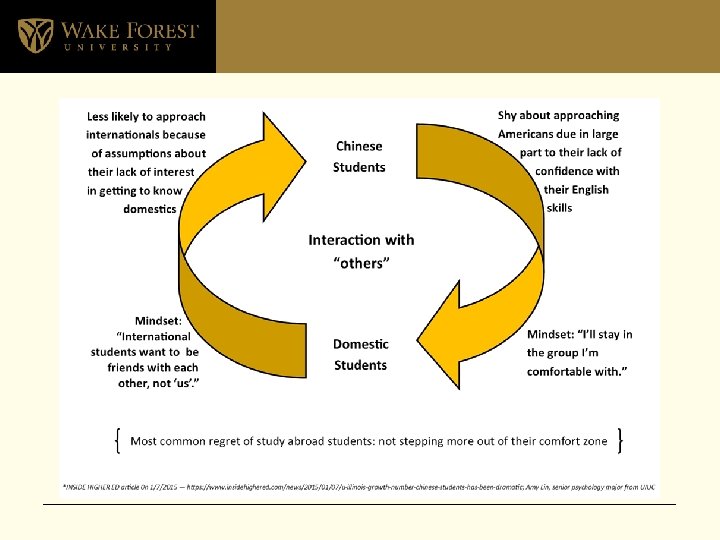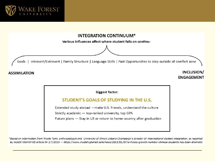 Let’s Gauge the Room • To what extent do you interact with International Students? • In what capacity do you interact with International Students? • Based on what you’ve heard from International Students, what are some of their experiences at Wake? • What brought you to this workshop today?