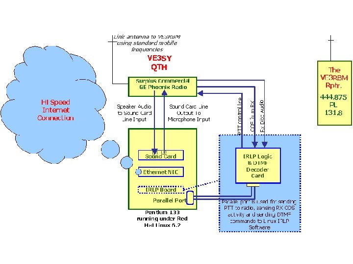 Typical IRLP Node • • Standard PC, P 100 or better Linux (Red Hat 7. 3) SB 16 ISA soundcard Custom IRLP computer/radio control interface • Radio • Dedicated internet connection