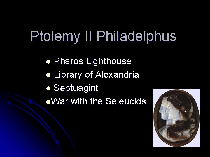 Ptolemy II Philadelphus Pharos Lighthouse Library of Alexandria Septuagint War with the Seleucids