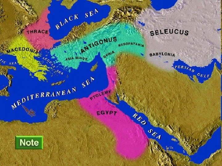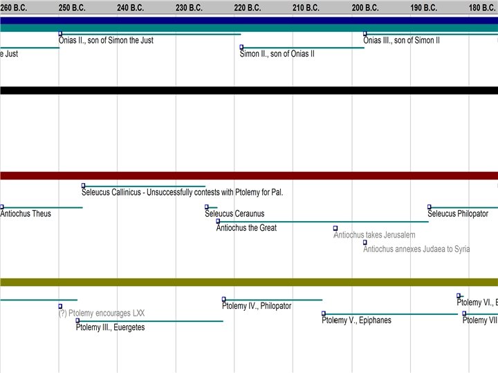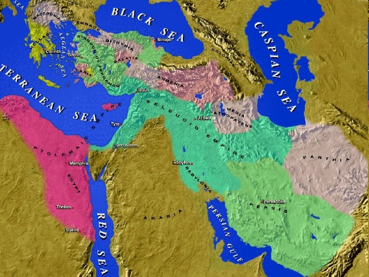 Ptolemies and Seleucids • Ptolemy Soter (323 -285) • Ptolemy Philadelphus (285246) • Ptolemy Euergetes (246 -221) • Ptolemy Philopator (221 -204) • Ptolemy Epiphanes (204 -182) • Ptolemy Eupator (182 -181) • Ptolemy Philometor (181 -145) • • Seleucus Nicator (312 -280) Antiocus Soter (280 -260) Antiocus Theus (260 -246) Seleucus Calinicus (246 -227) Seleucus Ceraenus (227 -223) Antiochus the Great (223 -187) Seleucus Philapator (187 -176) Antiochus Epiphanes (175163) • Antiochus Eupator (163 -162) • Demetrius Soter (162 -151)