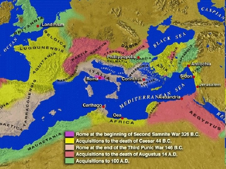 The Romans • • • Julius Caesar (49 -44 BC) Mark Antony (44 -31 BC) Augustus (31 BC – AD 14) Tiberius (AD 14 -37) Caligula (AD 37 -41) Claudius (AD 41 -54) Nero (AD 54 -68) Galba (AD 68 -69) Vitellius (AD 69) Vespasian (AD 69 -79) Titus (AD 79 -81) Domitian (AD 81 -96)