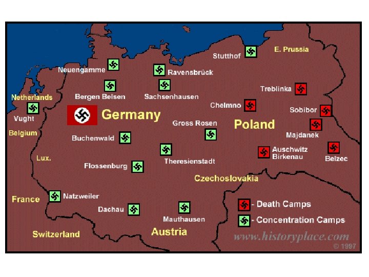 The Holocaust • Germans begin systematic oppression of Jews in Germany, Europe • Hitler sent Jews to concentration camps – Final Solution – the extermination of European Jews in death camps