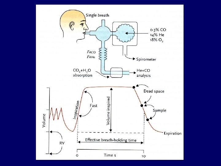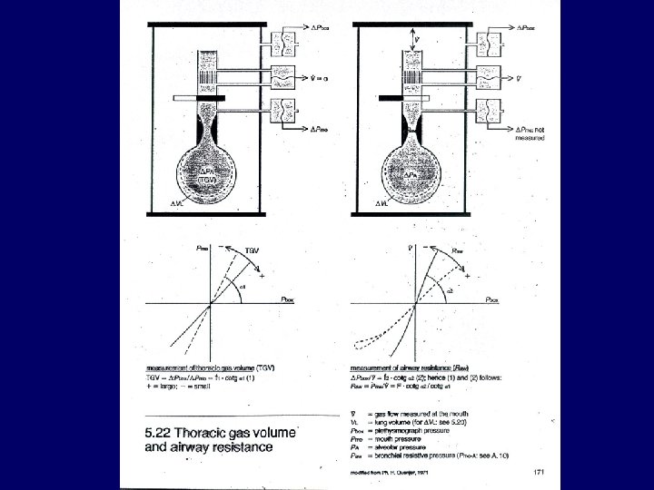 The inventor of spirometer John Hutchinson 1846 Ventilation Slides: 45 Download presentation The inventor of spirometer: John Hutchinson (1846) Ventilation and V/Q ratio Branching of the airways Static lung volumes IC Slow (SVC) and forced (FVC) vital capacity in health and disease Elastic forces and airway diameter Antropometric data determine reference values -Age -Height -Sex - Race Spirogram and flow-volume loop Asthma - reversible airway obstruction spirogram FVC: 2. 4 (73 ref%) – 3. 1 (92 ref%) FEV 1: 1. 0 (36 ref%) – 1. 5 (52 ref%) FEV 1/FVC: 42% - 49% F-V loop COPD = postbronchodilator FEV 1/FVC<70% (irreversible airway obstruction Lung fibrosis FVC: 75 ref% FEV 1: 78 ref% FEV 1/FVC: 87% TLC: 63 ref% RV: 57 ref% DLCO: 34 ref% Heart failure FVC: 55 ref% FEV 1: 49 ref% FEV 1/FVC: 74% Typical spirograms and flow-volume loops Etiology of obstructive and restrictive ventilatory disorders Pathophysiology of the variable lesion of the major (proximal) airways Typical F-V loops in cases of lesions of the major airways Flow-volume loops A: normal, B: obstructive, C: restrictive Inhalative provocation test with metacholin Asthma – reversible obtruction healthy asthmatic COPD COPD (emphysema!!!) Lung fibrosis Use of spacer with MDI How to measure FRC (RV, TLC) ? • Nitrogen washout method • Inert gas dilution technique • Plethysmography Resistance Volume dependence of airway resistance (Raw) RV SRaw (cm. H 2 O/L/sec) 4 3 2 1 TLC 0 2 4 6 Lung Volume (liters) 8 Compliance Diffusion capacity (DLCO, DLCO/VA, Tco, Kco) Arterial Blood Gas Respiratory and metabolic shifts chronic acute chronic Exercise tests in lung diseases 1. Exercise-induced asthma (EIA) - FEV 1 2. Interstitial lung disease (ILD) - SAT 3. Exercise tolerance in rehabilitation (COPD) cardiopulmonary exercise (CPX). Important variables: - work rate (watts), Sp. O 2, ABG - VO 2, VCO 2, RQ, VE - lactate threshold (LT) - breathing reserve (1 -VEmax/MVV) - heart rate reserve (1 -HRmax/220 -age) Mechanism of exercise-induced Hypoxaemia (decreased contact time) Noninvasive determination of lactate threshold by the V(entilatory)-slope method