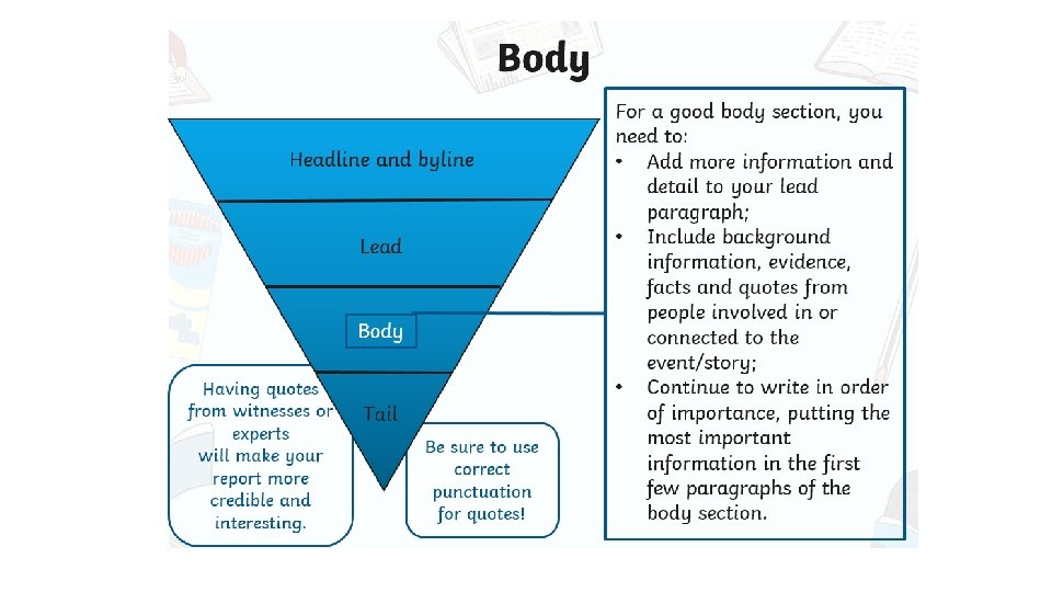 Using what we learned yesterday, we are now going to create a plan for our newspaper report.