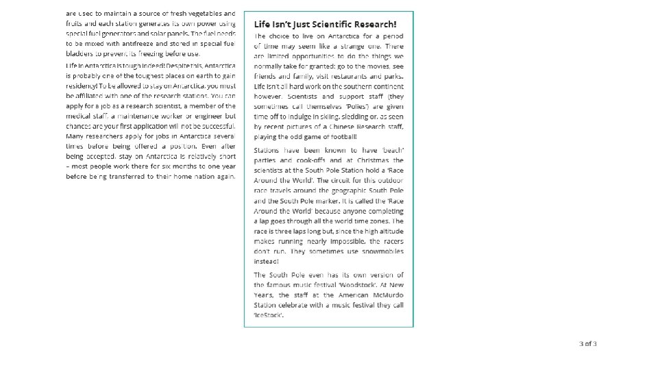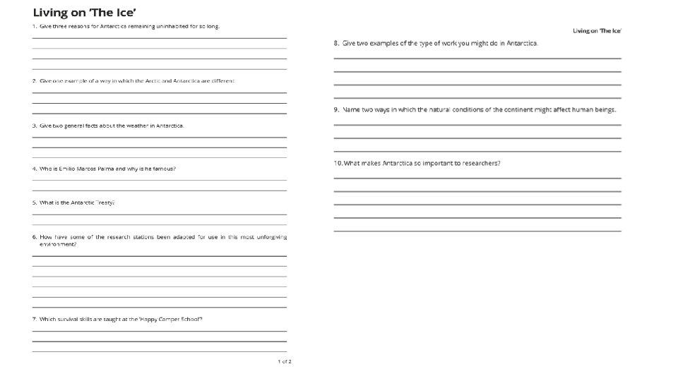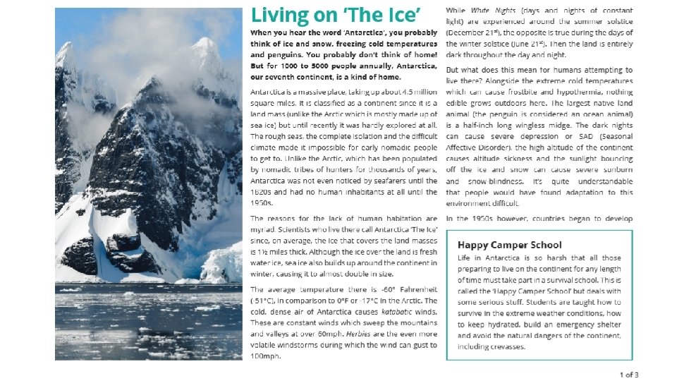 Comprehension • This week's comprehension is titled, 'Living on the Ice. ' • Please allow your child to read through the text and complete the questions. • Please write the answers in your English book or on paper. There is no need to write the questions. • When checking their answers, if they make a mistake please scaffold them towards finding the correct answer.
