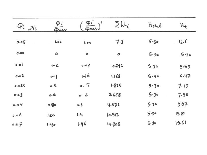 • for a given Qi , we have • for Qmax , we have • Therefore • Or From previous calculations we obtained for Qmax = 0. 05 m 3/s. Therefore, we can use the above equation along with the above values to find for several values of Qi. In order to calculate Hti.
