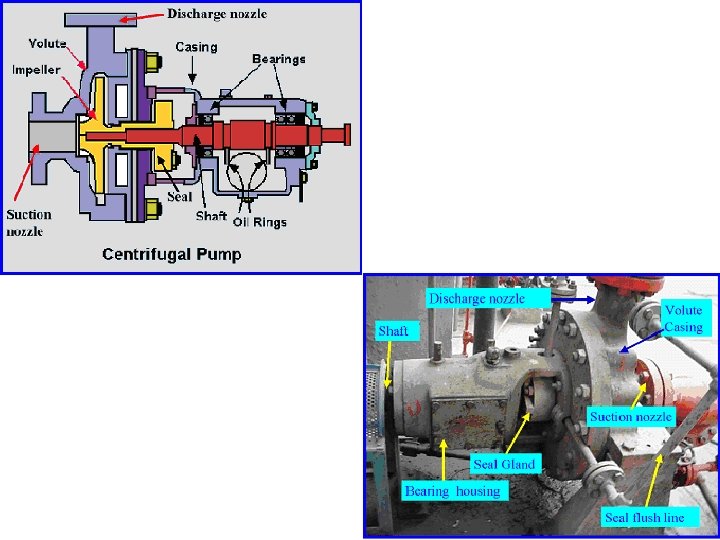 Main Parts of Centrifugal Pumps 2. Casing • • • Which is an air-tight passage surrounding the impeller designed to direct the liquid to the impeller and lead it away Volute casing. It is of spiral type in which the area of the flow increases gradually.