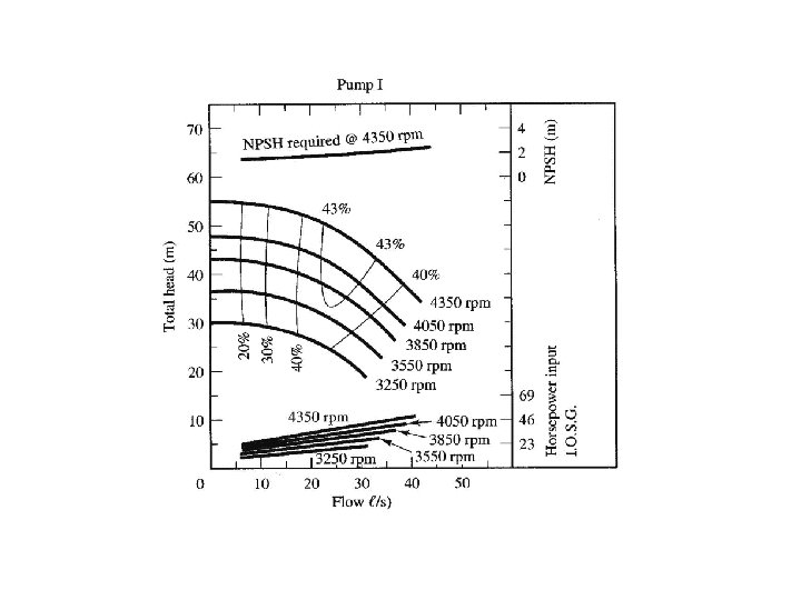 Variable-speed pumps • For this type, the angular speed , N , is variable, i. e. ; pump can operate at different speeds. • The pump performance is presented by several pump curves, one for each speed • Each curve is used to suit certain operating requirements of the system.