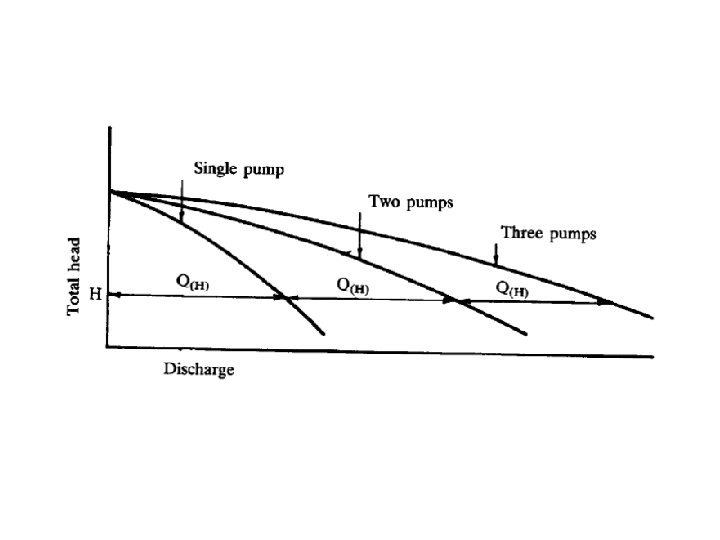 • In this configuration any number of the pumps can be operated simultaneously. • The objective being to deliver a range of discharges, i. e. ; the discharge is increased but the pressure head remains the same as with a single pump. • This is a common feature of sewage pumping stations where the inflow rate varies during the day. • By automatic switching according to the level in the suction reservoir any number of the pumps can be brought into operation.