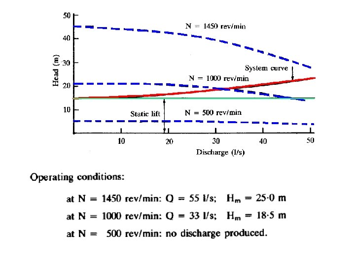This curve intersects the original curve for N 1 = 1000 rpm at C where Qc= 8. 2 m 3/ hr and Hc= 21. 9 m, then N 2 = 855 rpm